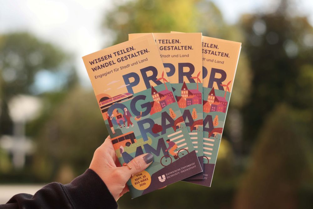 Es heißt wieder: „Wissen teilen, Wandel gestalten.“ Bereits zum vierten Mal erscheint das Programmheft der Katholischen Universität Eichstätt-Ingolstadt (KU) mit Veranstaltungstipps für alle, die den Austausch von Wissenschaft und Gesellschaft mitgestalten möchten. Es warten vielfältige Veranstaltungen, die Engagement und Zusammenhalt in Eichstätt, Ingolstadt und in der Region fördern. Von spannenden Vorträgen über inspirierende Ausstellungen bis hin zu aktivierenden Mitmach-Aktionen ist alles mit dabei.