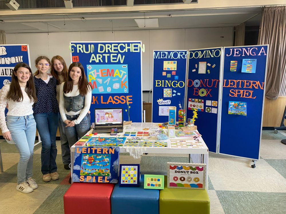 Die vier Schülerinnen entwickelten verschiedene Lernspiele, mit denen Fünftklässler die Grundrechenarten spielerisch üben können. Mit Hilfe der liebevoll und aufwendig gestalteten analogen und digitalen Spiele wird das Kopfrechnen nun um einen großen Spaßfaktor erweitert.