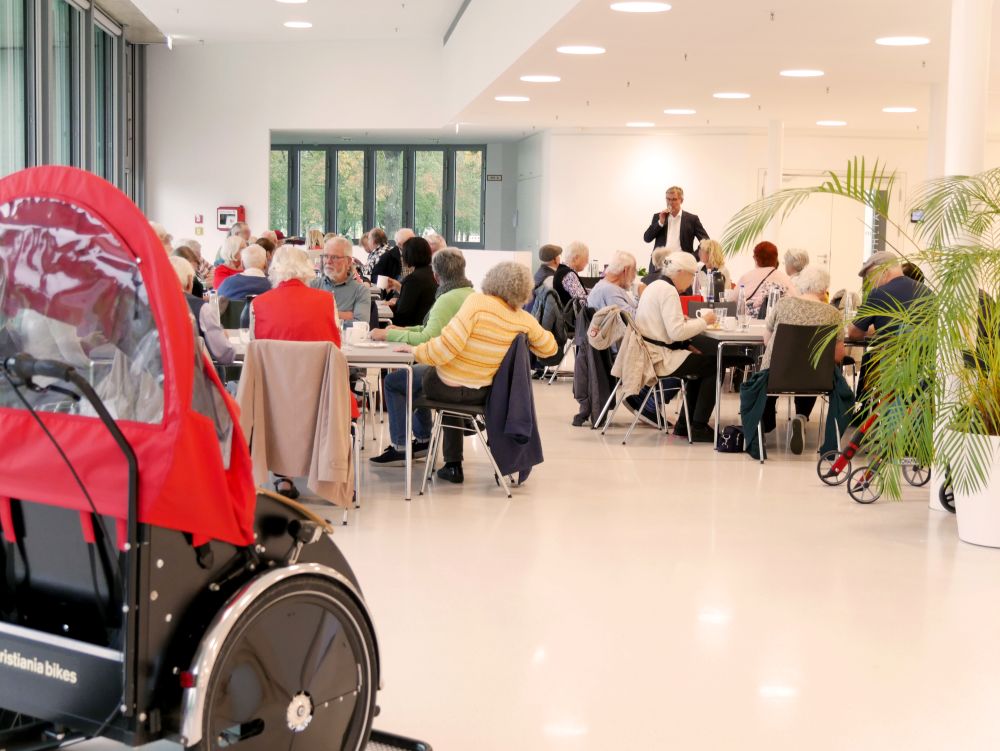 Nach ca. 80 Minuten Busfahrt wurde die Stadthalle angesteuert, in der die Teilnehmerinnen und Teilnehmer zu Kaffee und Kuchen eingeladen waren. Vor Ort informierte Thomas Thill, der Vorsitzende des Seniorenbeirats, über aktuelle Projekte und Maßnahmen für Ältere in der Stadt Gunzenhausen. Stefan Dietz, Geschäftsführer der MVG, referierte über die Freizeitlinien und anderen Angebote des Öffentlichen Personennahverkehrs in der Stadt Gunzenhausen. Und Reinhard Adolphs stellte die Senioren-Rikscha vor und erklärte, wie eine Mitfahrt mit dieser gebucht werden kann. Der Erste Bürgermeister stand bis zum Ende für Fragen zur Verfügung.
