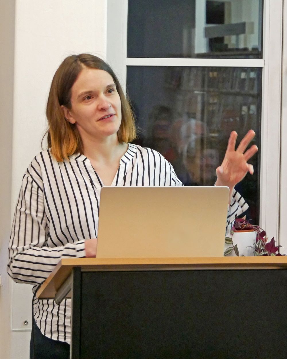 Bildunterschrift: KI-Expertin Professor Dr. Anna Kruspe sprach in der Stadt- und Schulbücherei Gunzenhausen über den Einsatz generativer Modelle im Alltag. Foto: Stadt Gunzenhausen