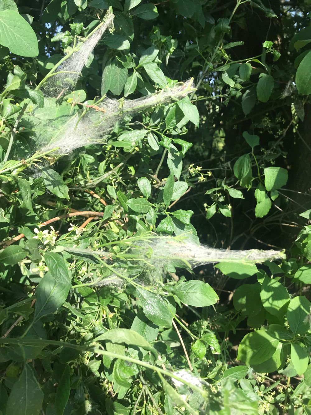 Freising (red). Das warme Frühsommer-Wetter fördert die Aktivität vieler Insekten. Wer derzeit aufmerksam in Wald und Flur unterwegs ist, findet an vielen Baum- und Straucharten auffällige, weißgrau eingesponnene Zweige oder Kronenteile. Viele befürchten dann sofort einen Befall durch den Eichenprozessionsspinner. Zumeist sind die Bauherren dieser sogenannten Gespinste jedoch Schmetterlingsraupen aus der Familie der Gespinstmotten. Aber natürlich spinnen auch andere Insekten …